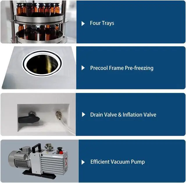 Vacuum freeze-drying technology, called freeze-drying for short, is also called sublimation drying. It is a method of pre-freezing water-containing materials and then sublimating them under vacuum. Freeze-dried items have basically the same original biological and chemical properties, and are easy to store for a long time. After adding water, they can return to the form before freeze-drying and can maintain their original biochemical properties. Therefore, freeze drying technology is widely used in the chemical industry, lab, food freeze dryers and other fields.