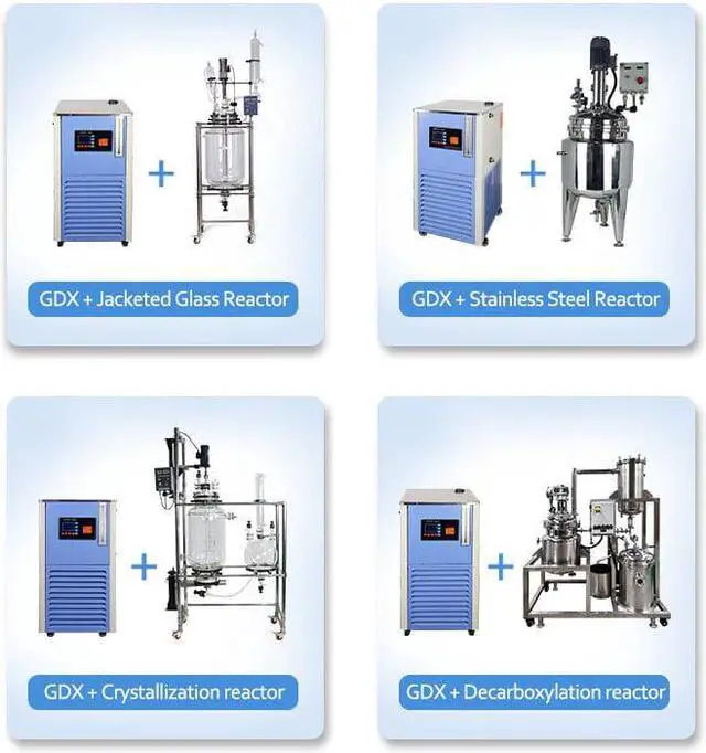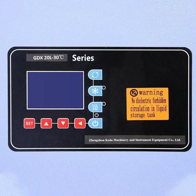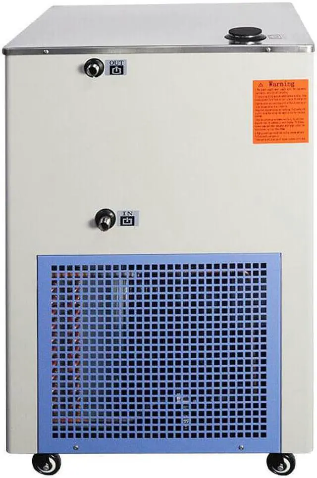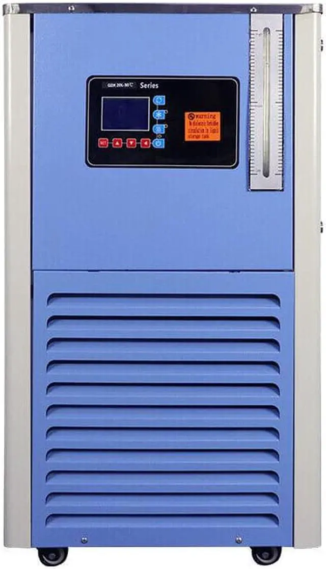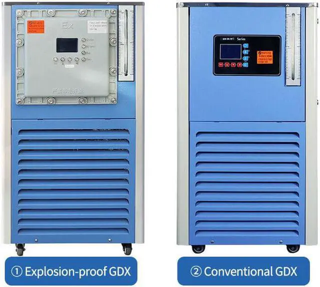 In the whole system of GDX series high and low temperature circulation device, the liquid circulation is sealed, the system has an expansion vessel, which is mechanically connected, does not participate in the liquid circulation and is insulated from the liquid circulation. Regardless of whether the temperature of the liquid cycle is high or low, the medium in the expansion vessel is less than 60 degrees. The whole liquid cycle is a closed system, no water vapor will be inhaled at low temperature, and no oil mist will be inhaled at high temperature, and the heat transfer oil has a wide working temperature.