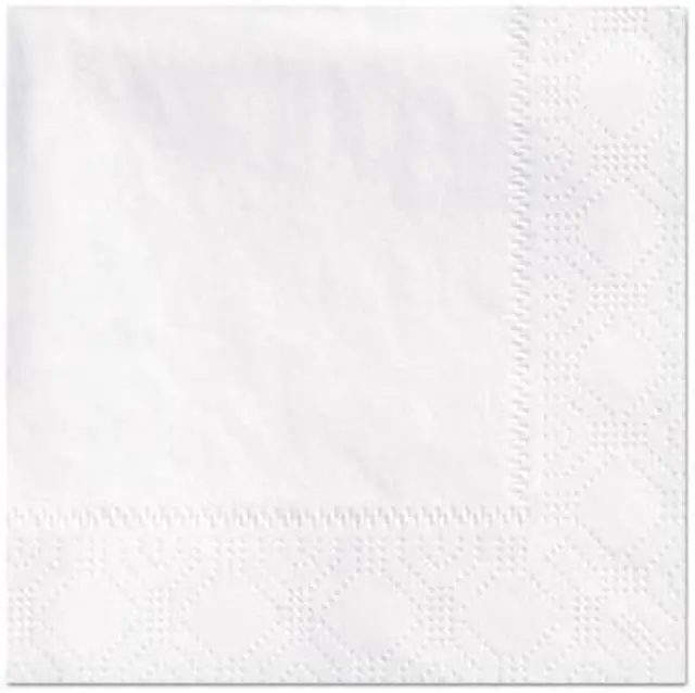 Economically priced beverage napkins help you protect your surfaces without breaking the bank. Attractive, extra-absorbent, coin-embossed design. Material(s): Paper; Color(s): White; Width: 9.5"; Depth: 9.5".