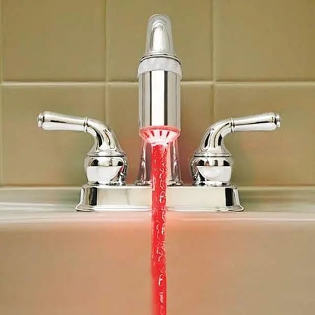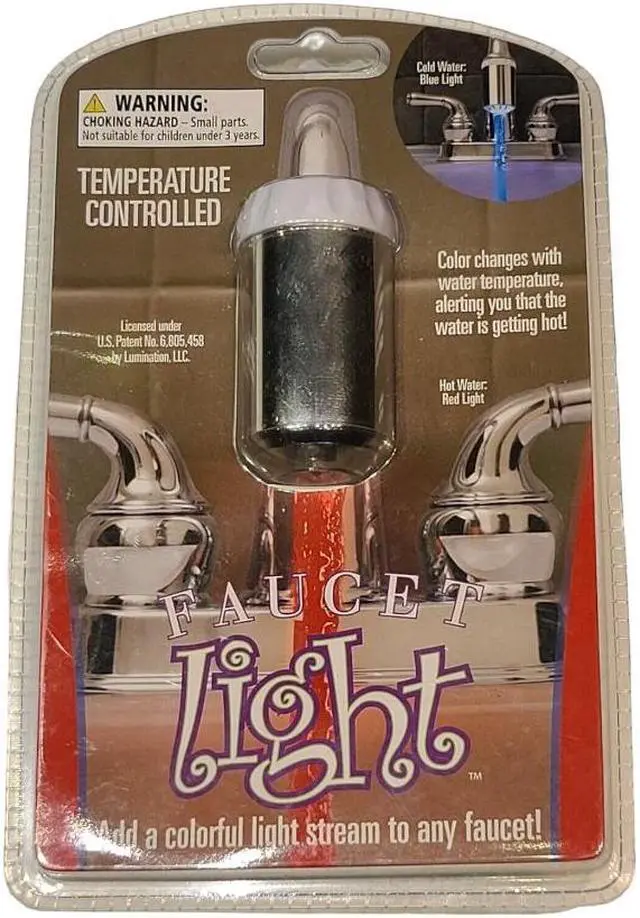 Hog Wild - The Temperature Controlled Faucet Light in blue and red is a practical and stylish accessory for your bathroom or kitchen. With its universal fit it's easy to install and provides a visual indication of water temperature. The light emits a calming blue glow for cold water and transitions to a vibrant red for warm or hot water promoting safety and preventing accidental burns. Made with durable materials this faucet light ensures long-lasting performance. Upgrade your space with this innovative and visually engaging faucet accessory. Universal Fit Faucet Light - Silver