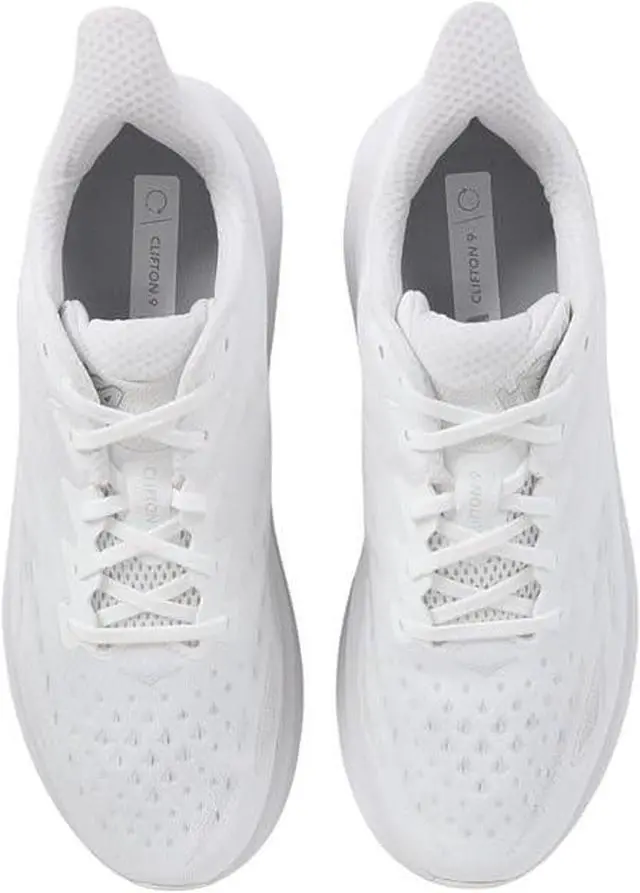 Light and plush for everyday miles. The ninth iteration of our award-winning Clifton franchise has launched lighter and more cushioned than ever before. Eliminating weight while adding 3mm in stack height the new Clifton 9 delivers a revitalized underfoot experience with a responsive new foam and improved outsole design. Removing overlays and hotmelts the stripped back upper has been consciously crafted with a plusher heel reflective heel panel and streamlined tongue with single side medial gusset. Breathableengineered knit upper. Gusseted tongue. Laces with 70% recycled nylon and 30% recycled polyester (excluding aglet). Compression molded EVA foam midsole.