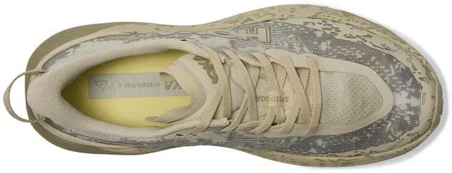 Romance: Theres only one GOAT on the trail. And this is it. Combining HOKAs tried and true cushioning with aggressive traction and ultralight materials, the Speedgoat 6 was born to tame the trail. A workhorse for technical terrain, this recent reissue was refined with a breathable woven textile upper, foot-hugging internal chassis, plusher dual gusset tongue, and revised lug orientation inspired by the hoof of a goat (what else? ) Upper · Vegan · Dynamic sandwich mesh · Gusseted tongue Midsole · CMEVA · All new lightweight, resilient foam Outsole · Vibram® Megagrip with Traction Lug · 5mm lugs