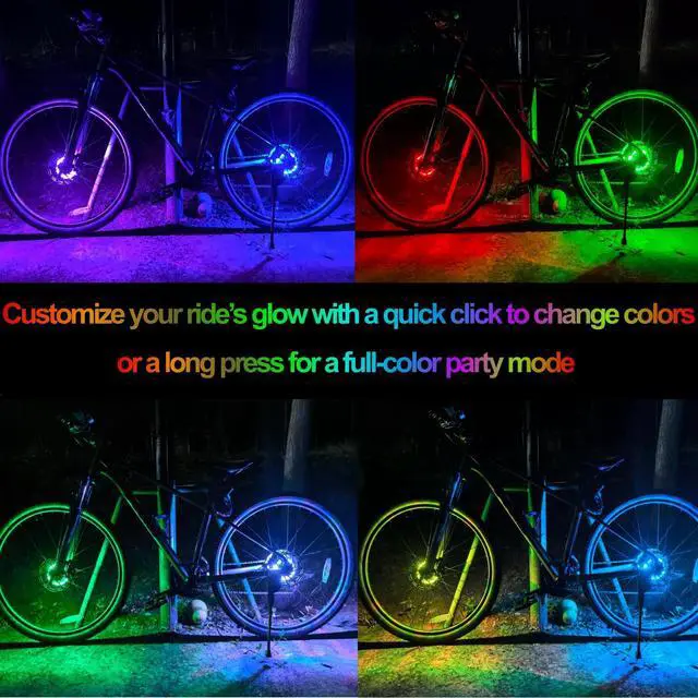 • Super Bright 7-Color Led Spoke Lights & Disco Modes: Featuring 7 colors and 16 dazzling light modes (including an all-color disco cycle). Customize your rides glow with a quick click to change colors or a long press for a full-color party mode. The eye-catching bike wheel lights make your ride stand out and will be the perfect birthday gift for kids, boys, girls, teens or adults who love to ride in style. Perfect for night cycling, Burning Man, Christmas, festivals, events, or parties