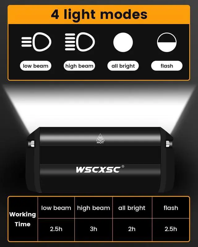 The bike light can switch between 4 modes . Avoid direct radiate to the eyes of the opposite person.