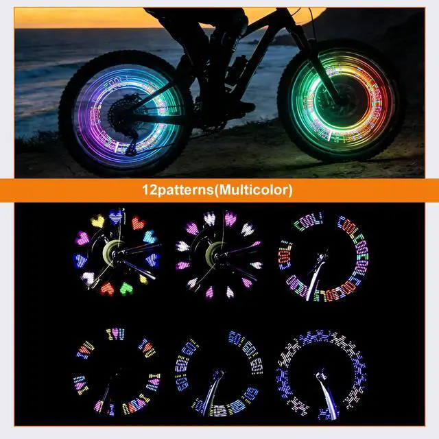 2 PCS Led Bike Wheel Lights, Waterproof Bike Spoke Lights, Multi-Patterned Change Neon Flashing Lamp Glow in The Dark, Bicycle Tire Valve Stem Light (RGB)