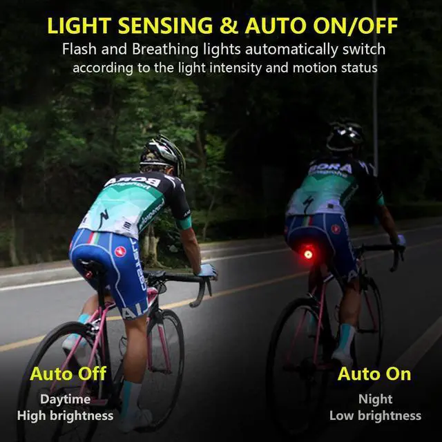 - Flash light and breathing light will auto turn on when the bike tail light sense any moving or vibrating ,otherwise it will auto turn off