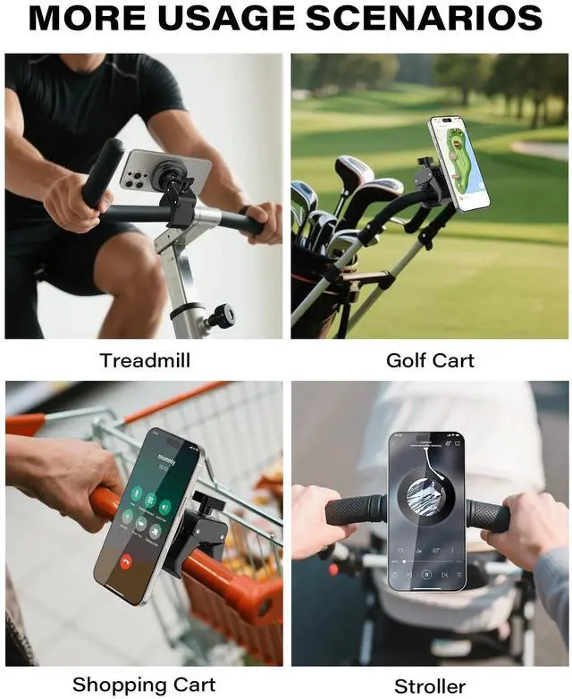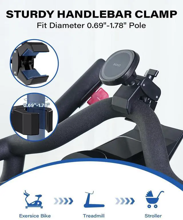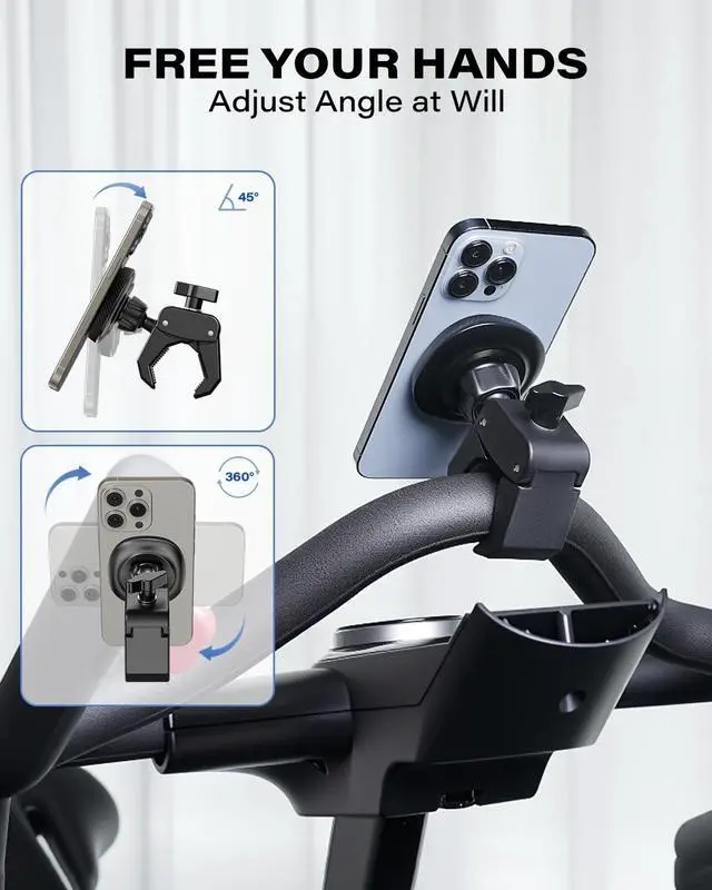 Strong & Secure Hold: Heavy-duty clamp with reinforced rubber grip ensure the rock-solid on handlebars. Build-in strong magnets keep your phone in place stable. Whether youre riding on a Peloton bike, walking on a treadmill, or pushing a stroller outdoors, this phone mount is durable enough for intense workouts, travel, or daily use.
