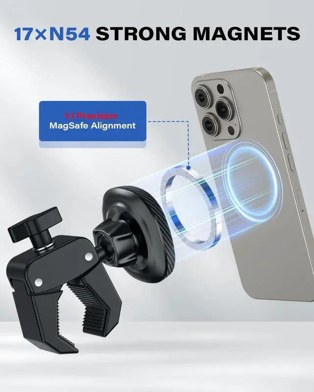 Phone Holder for Peloton Exercise Bike, Heavy-Duty Clamp & 17 N54 Strong Magnetic Phone Mount for Treadmill, Spin Bike, Golf Push Cart, Stroller, Fit for MagSafe iPhone 12-17 Series