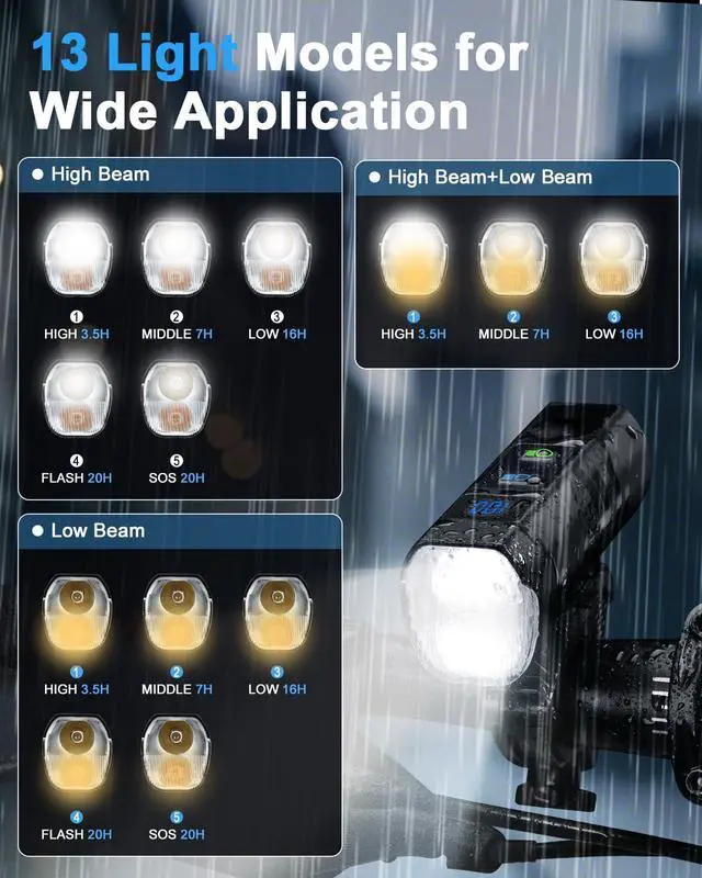IPX5 waterproof rating means bike light headlight can handle rain, splashes, and even heavy water jets, keeping your ride illuminated in any weather.