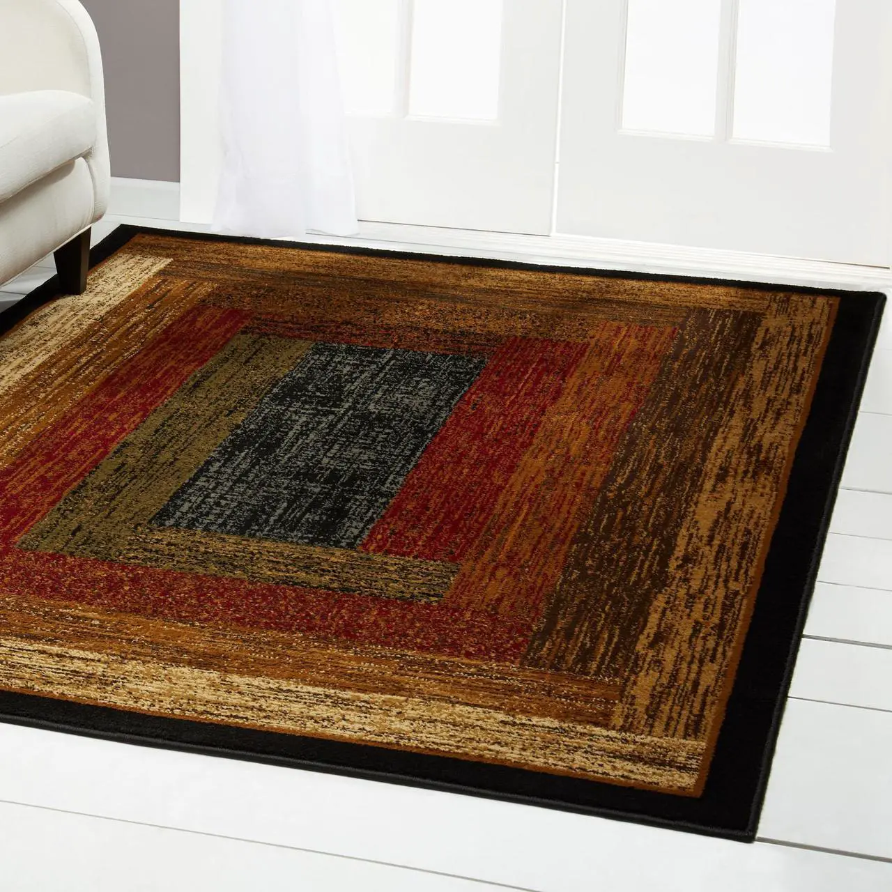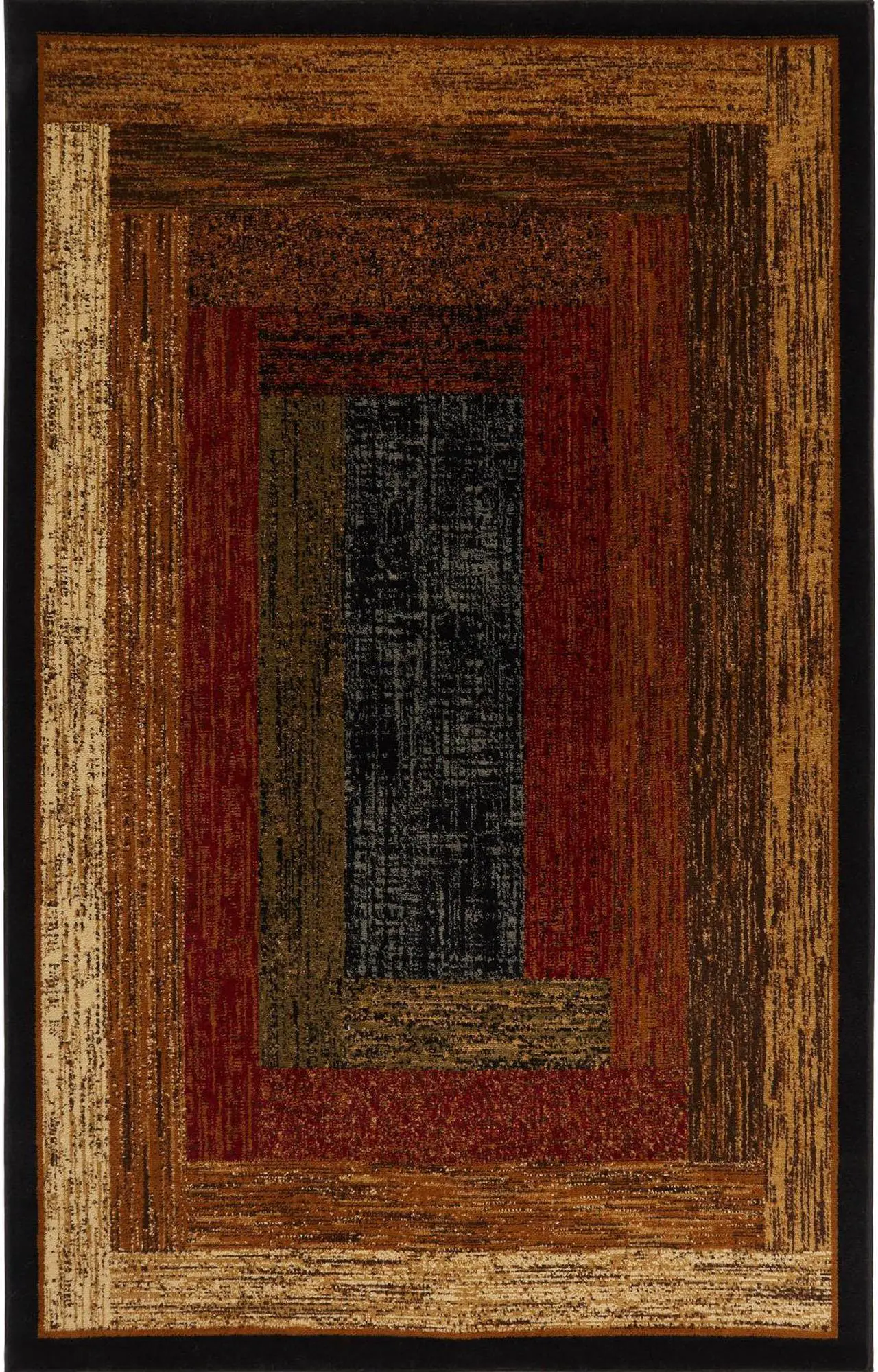 Embellish your hardwood floors with the Royalty Vega rug collection. Inspired by mid-century modern style, this rug collection features a layered rectangle design with a distressed appeal in earth tone hues. Well-constructed of heat set polypropylene, this rug repels stains while its cushiony fibers feel pleasant to your bare feet. Durable jute backing ensure to protect your floors from everyday wear and tear. Well-suited for high traffic areas in the home. Made in Turkey.