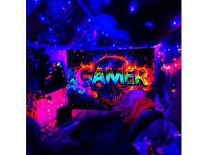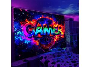 Glow in The Dark Skull Theme Games Tapestry 2D Flat - Enigmatic Individual Game Controller Design, UV Reactive Neon Wall Art for Bedroom, Game Room, Dorm, Man Cave Decor(92x72in)