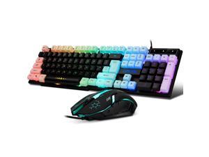CHONCHOW Gaming Keyboard and Mouse Combo,USB Wired 104-Keys Full Size Light Up Keyboard Mic 3600DPI Rainbow Backlit Mechanical Feeling Compatible with PC Xbox Mac OS Game and Work