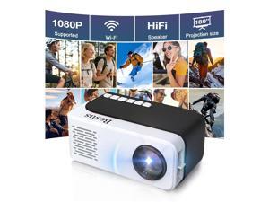Mini Projector, HD 1080P WiFi Video Projector, Portable Outdoor Projector with Tripod, Gift for Kids, Home Theater Movie Phone Projector Compatible with USB, AV, Smartphone/Tablet/Laptop (black)
