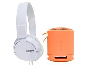 Sony XB100 Portable Waterproof Bluetooth Speaker (Orange) with Sony MDR-ZX110 On-Ear Wired Headphones (White)