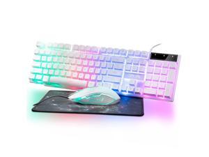 Gaming Keyboard and Mouse Wired CHOCNHOW White Keyboard Rainbow Backlit,Light Up Keys, Multimedia Keys, Waterproof Compatible with PC Laptop Xbox Ps4/Ps5 Work/Gamer