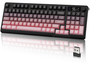 LexonElec M96 Wireless Keyboard, Low Profile Quiet Typing Membrane Gaming Keyboard with Smart Display & Knob, RGB Backlit, USB C Rechargeable, 94 Keys PBT Keycap for Windows PC, Mac, Linux-BlackBerry
