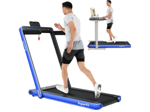Goplus 2 in 1 Folding Treadmill with Dual Display, 2.25HP Superfit Under Desk Electric Pad Treadmill, Installation-Free, Blue Tooth Speaker, APP Control, Remote Control, Walking Jogging for Home