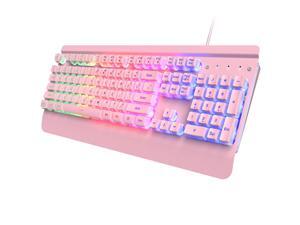 Dacoity Pink Creamy Keyboard, 104 Keys All-Metal Panel, Rainbow LED Backlit Silent Gaming Keyboard, Wrist Rest, PBT Keycap, Anti-ghosting Keys, Light Up USB Wired Computer Keyboard for PC