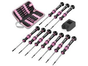 GRENPRO 10-Piece Precision Screwdriver Set, Magnetic Small Screwdrivers with Phillips, Slotted, Torx Star for Eyeglass, Watch, Computer, Laptop, Phone,Pink