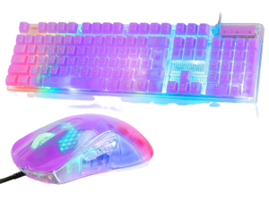 CHONCHOW RGB Gaming Keyboard and Mouse Combo,USB Wired Custom Clear Keyboards, Rainbow LED Backlight Transparent Keyboard Mouse Set for Computer Windows PC PS4 Xbox Laptop