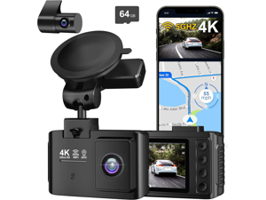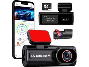 4K Dash Cam Front and Rear, 5.8GHz WiFi Dash Camera for Cars with 64GB Card Included, 1.97" Screen Dash Cam with APP Control, G-Sensor, Loop Recording, WDR Night Vision, 24H Parking Monitor