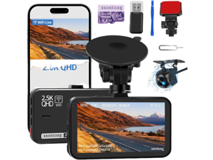 Dash Cam Front and Rear, Dash Camera for Cars WiFi/APP Control Dual Dashcam W/ 64GB Card, 2.5K Dash Cam Front+1080P Rear Car Camera W/Super Night Vision, Loop Recording, G-Sensor, Max Support 256GB