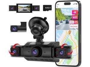 CATCATCH 4 Channel Dash Cam 360° View,4K Front and Rear Dash Camera for Cars,WDR Night Vision,Smart Voice Control,Built-in WiFi&GPS,G-Sensor,24H Parking Mode,Free 64GB SD Card,Suction Cup