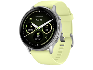 Garmin Venu® 4, 45mm, Advanced Health and Fitness GPS Smartwatch, Bright and Colorful Display, Built-in Flashlight, 12 Days of Battery Life, Silver with Citron Silicone Band
