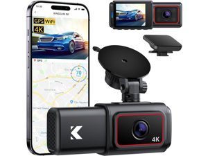 Kingslim D6-4K Dual Dash Cam - WiFi & GPS 4K Front and 1080P Inside Type-C Uber Car Camera with Super Night Vision and 24-Hour Parking Monitor, 3 Channel Dash Cam Optional, Black