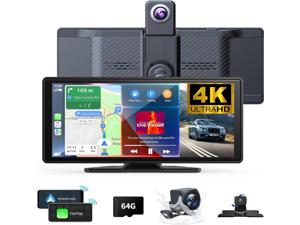 Wireless Carplay Screen for Car 10.26" 4K 360 Rotation Dash Cam Carplay&Android Auto Car Stereo 1080p Backup Camera GPS Navigation/Mirror Link/Voice Control/Siri/FM Satellite Radio Receiver