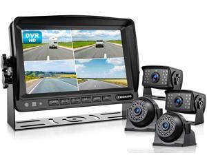 Fookoo HD 1080P 7" Wired Backup Camera System, 7-inch Quad Split Screen Monitor W/Recording, IP69 Waterproof Side View Rear View Cameras, Parking Lines for Truck/Trailer/RV/Tractor/ 5th Wheel (DY704)
