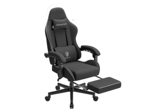 Dowinx Fabric Gaming Chair with Massage Lumbar Support, Ergonomic Computer Chair with Adjustable Headrest and Footrest, Cloth Gamer Chair with Pocket Spring Cushion, Black