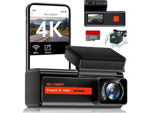 Dash Cam Front and Rear, S80 4k+1080P Dual Dash Camera for Cars, WiFi Mini Car Camera,1.47 Display Dashcam,170°Wide, Night Vision,24H Parking Mode, G-Sensor,Loop Recording, Free 32G Card, App