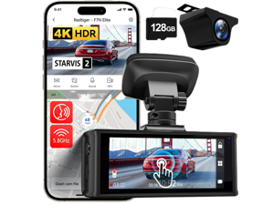REDTIGER 4K HDR Dash Cam Front and Rear, STARVIS 2 Sensor, 5.8GHz WiFi APP, 3.18" Touchscreen, Voice Control, 128G Card Included, WDR, Dash Camera for Cars with GPS, 24H Parking Mode(F7N Elite)