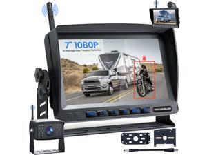 RV Backup Camera, Vehicle Backup Camera with AI Detection, 1080P Backup Cameras, 7'' Waterproof Wireless Backup Camera with DVR Recording & Night Vision for Car, Van, SUV, Truck, Trailer