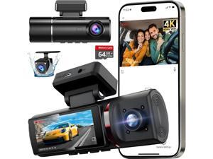 3 Channel 4K Dash Cam Front, 1080P Dash Camera Rear and Inside for Cars with 3.16 IPS Screen, 64GB Card, G-Sensor, 24Hr Parking, App Control,Loop Recording, Night Vision,Support 256GB Max