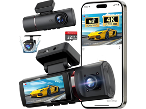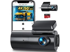 GKU Dash Cam Front and Rear Camera 4K+1080P Dual Dash Camera for Cars with 64GB SD Card, 5GHz WiFi & App Control, Night Vision, Parking Mode, G-Sensor, Loop Recording, WDR, 170° Wide Angle