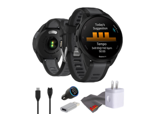 Garmin Forerunner 165 GPS Running Smartwatch Bundle - Black/Slate Gray
