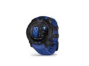 Garmin Instinct® 3 - 45 mm, AMOLED Display, Rugged Outdoor GPS Smartwatch, Built-in Flashlight, Supernova Collection Limited Edition Color, Black with Bolt Blue/Black Silicone Band