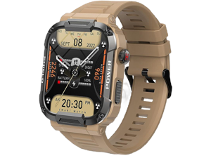 Military Smart Watches for Men, IP68 Waterproof Smart Watch with Bluetooth Call ,Fitness Tracker Watch with 100+ Sports Modes, Tactical Smartwatch for iPhone Android Phone(Khaki)