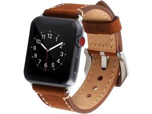For Apple Watch Band 42mm Genuine Leather iWatch Bands Strap Vintage Brown with Stainless Metal Clasp for Apple Watch Series 3 Series 2 Series 1 Sport Edition Brown
