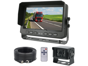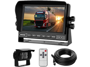 Backup Camera System Kit 7" LCD Reversing Monitor +Rear View Back Up Camera with 170 ° Wide Angle, Waterproof IP68, 18 Infrared Night Vision for Trucks/RV/Trailers/Bus/Vans/Box Truck