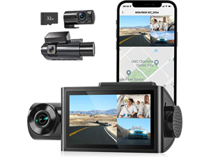 WOLFBOX i07 Dash Cam, 3 Channel Dash Cam Built in WiFi GPS, 4K+1080P Dash Camera Front and Inside, 2K 1440P+1080P+1080P, 3" LCD Super IR Night Vision, 24 Hours Parking Monitor, Support 128GB Max