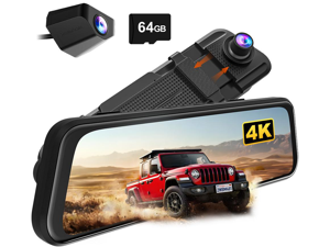 WOLFBOX M40 Lite 4K 10" Front Rearview Mirror Dash Cam and 1080P Rear Camera, Touch Screen, Loop Recording