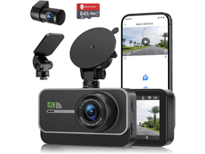 Dash Cam Front and Rear,4K+1080P WiFi Dual Dash Camera for Cars with App, 3" IPS Dual Dashboard Camera Recorder,Night Vision,24H/7 Parking Mode, Loop Recording,170° Wide Angle,Free 64GB SD Card
