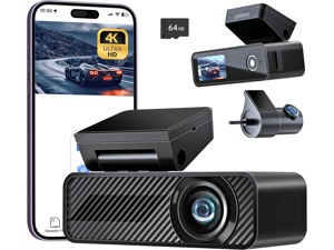 Pelsee P1 Duo 4K Dash Cam Front and Rear, 64GB SD Card, 4K+1080P Dual Dash Camera for Cars, Wi-Fi & App Control, 1.5IPS Display Car Camera, Voice Control, Night Vision, 24H Parking Mode, G-Sensor