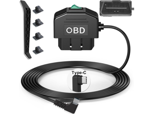 Dash Cam OBD Hardwire Kit, Dash Camera USB Type C Hardwire Kit with OBD2 Power Cable for Dashcam 12-24V to 5V/3A with Low Voltage Protection 24h Parking Surveillance/ACC Mode for Dashcam, GPS or Radar