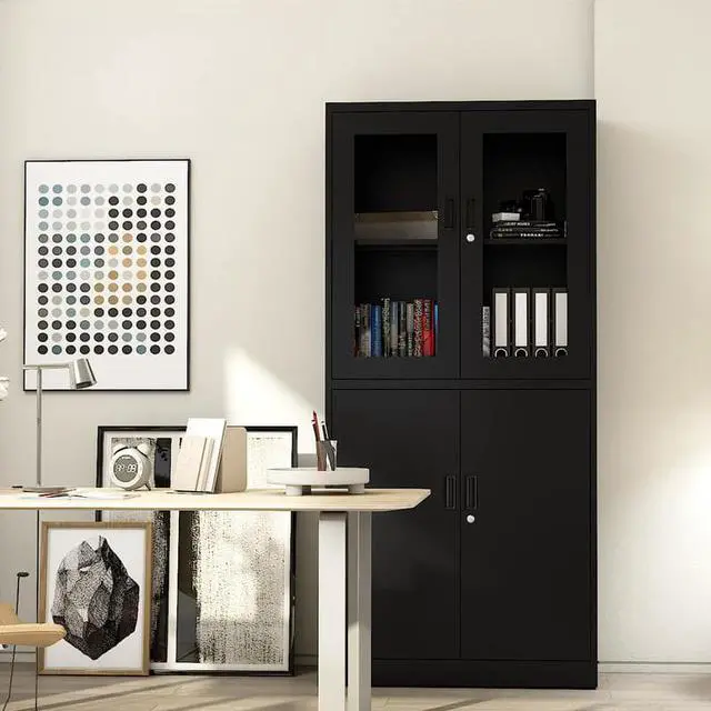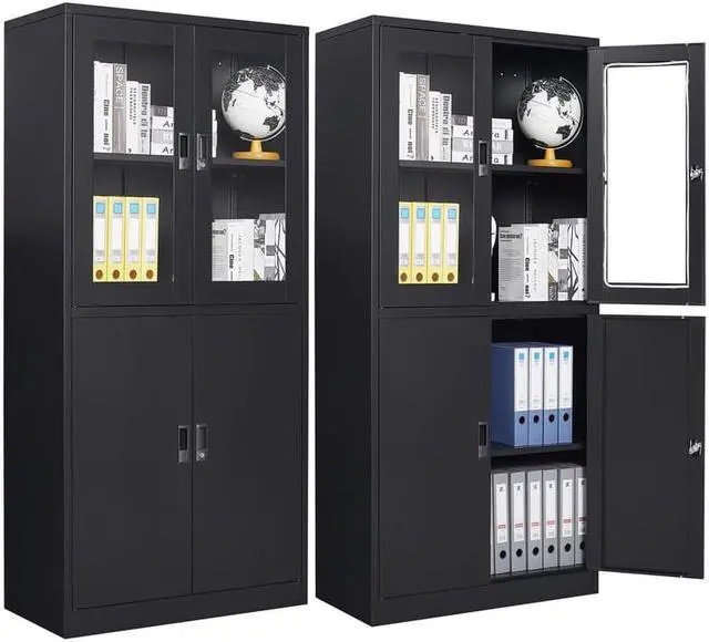 Locking Metal Storage Cabinet with Glass Door
