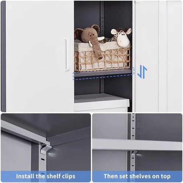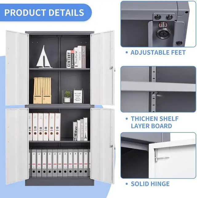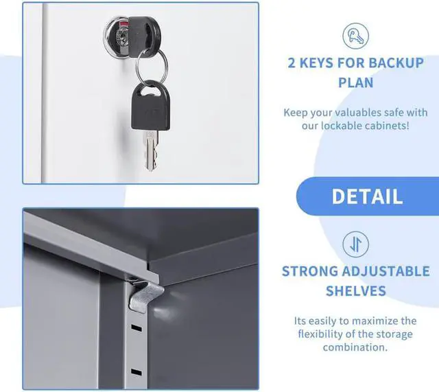 Steel Storage Cabinet with Doors and Shelves, Black/White File Cabinet for Home Office, Heavy Duty Garage Shelf with Lockable Doors