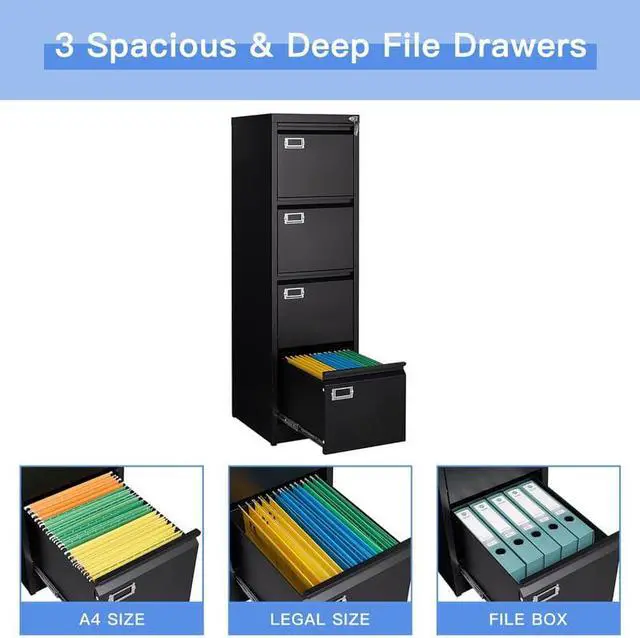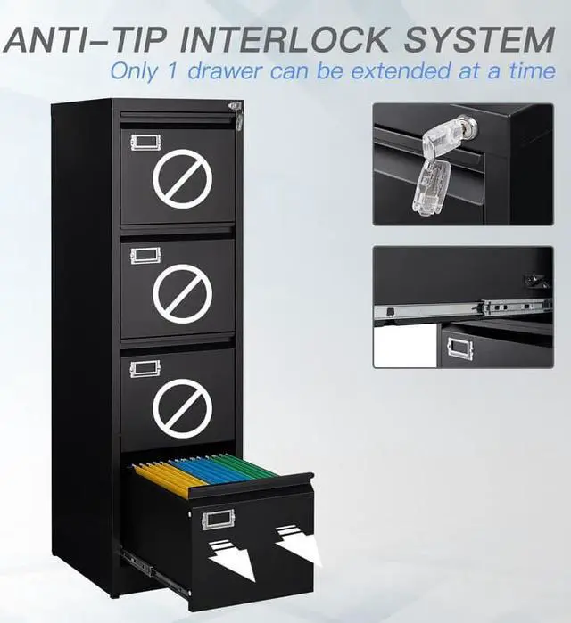 - 52.4" height vertical 4-drawer file cabinet fits most home office.